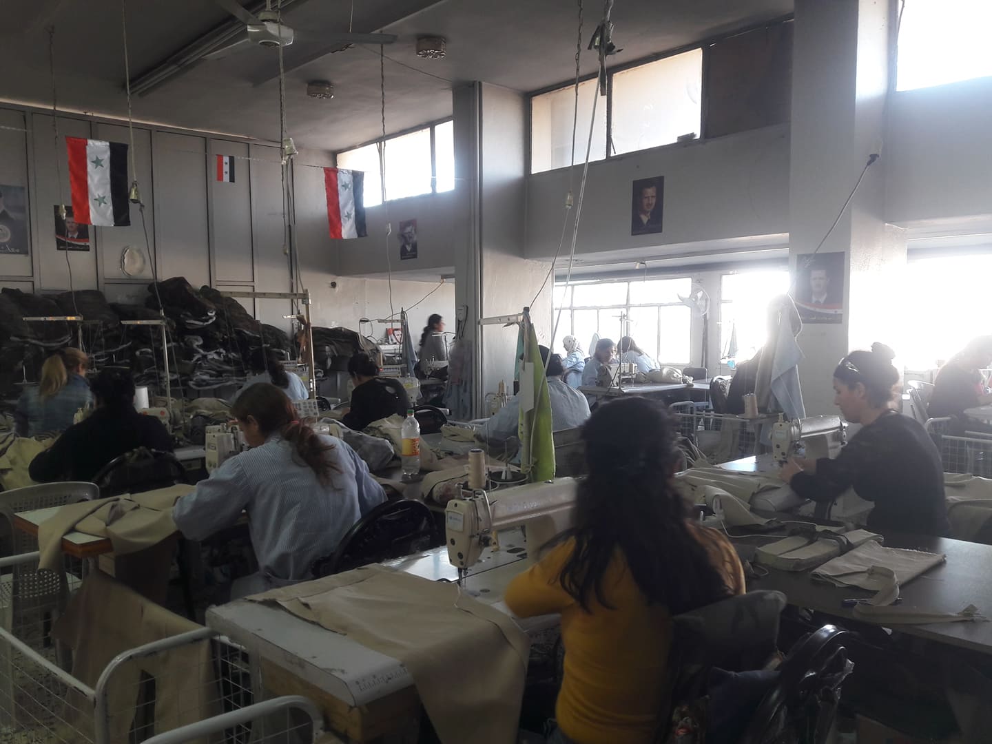 و ذكرت رئيسة المشغل منال الحاج أنه يعمل ضمن المشغل حوالي 60 عاملة بين قص و إنهاء و مكنات… وإنتاج المشغل بمعظمه هو لباس العمل من (افرولات و مراويل ) الخاصة بمعامل القطاع العام وهو يتبع لوزارة الصناعة .