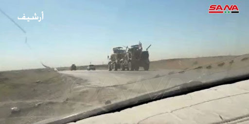 وذكرت مصادر محلية من المنطقة لـ سانا أن رتلاً لقوات الاحتلال الأمريكية مكوناً من 26 آلية وشاحنة محملة بأسلحة وذخائر وعتاد لوجستي دخل خلال الساعات الماضية إلى قاعدة الاحتلال الأمريكي في منطقة التنف.