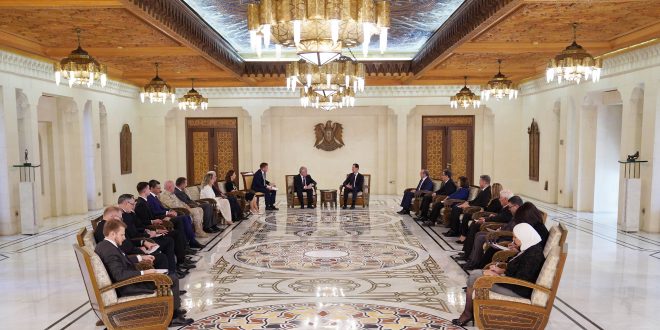 استقبل السيد الرئيس بشار الأسد وفداً روسياً برئاسة ألكسندر لافرنتييف المبعوث الخاص للرئيس فلاديمير بوتين، والذي يزور سورية للمشاركة في أعمال الاجتماع الدوري المشترك للهيئتين التنسيقيتين السورية والروسية حول عودة اللاجئين والمهجرين المنعقد في دمشق.