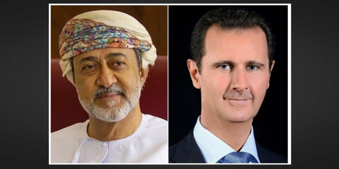 بعث السيد الرئيس بشار الأسد برقية تهنئة إلى جلالة السلطان هيثم بن طارق آل سعيد سلطان عمان بمناسبة الذكرى الـ 51 للعيد الوطني لسلطنة عمان.