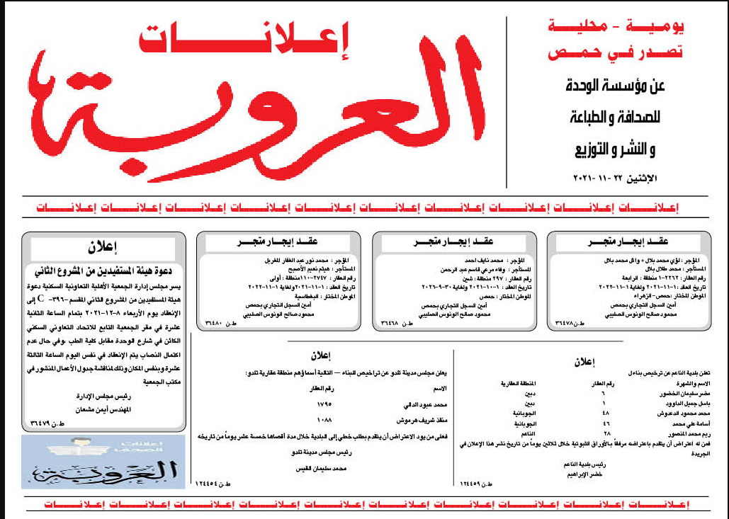 اعلانات العروبة إعلانات في 22 تشرين ثاني , 2021 شارك FacebookWhatsAppFacebook MessengerTelegramTwitter