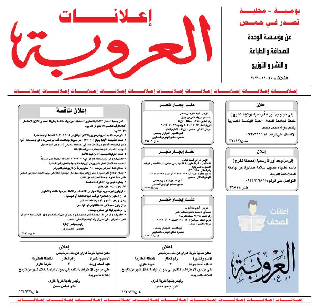 إعلانات العروبة إعلانات في 30 تشرين ثاني , 2021 شارك FacebookWhatsAppFacebook MessengerTelegramTwitter