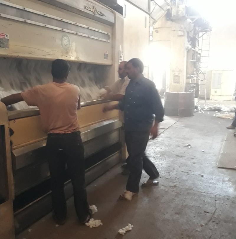 وأشار الصارم أن عمليات حلج الأقطان المحبوبة بدأت بتاريخ ٩ – ١١ وحتى تاريخه تم حلج ٣٧٠ طناَ نتج عنها ٧٦٢ بالة بوزن إجمالي بلغ ١٣٣ طنا و ٢١٧ طنا من البذور الصناعية سيتم توريدها تباعاً إلى شركة سكر حمص و ٦ أطنان موتس و١٠ أطنان غبرة هشة و ٤ أطنان غبرة ناعمة مشيراً أن عمليات توريد الأقطان وعمليات الحلج مستمرة ..
