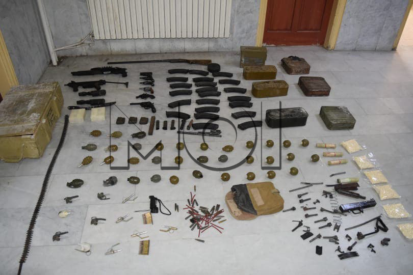– صواعق وعبوات لاصقة وقطع أسلحة حربية متنوعة .