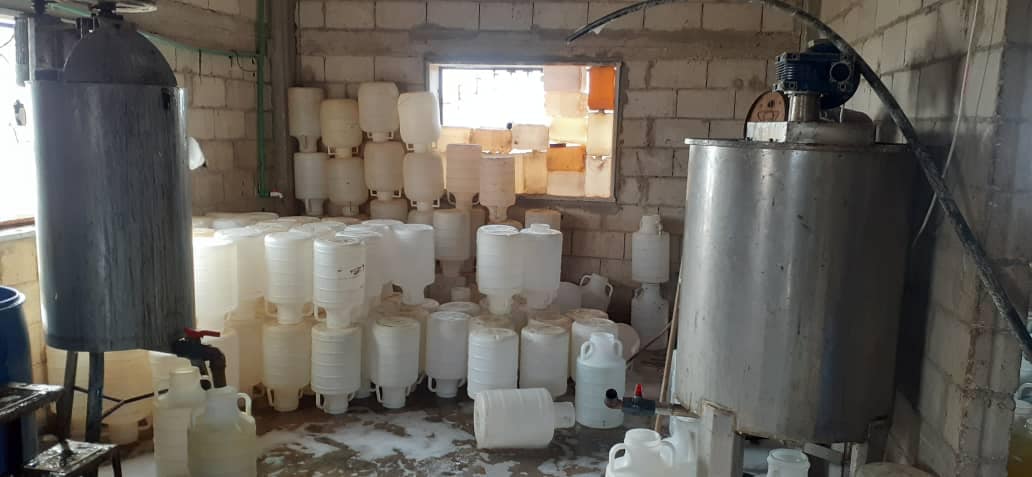 ضبط عناصر مديرية التجارة الداخلية وحماية المستهلك بحمص معملين لصناعة المنظفات الأول في قرية الفرحانية الغربية يقوم بتصنيع المنظفات دون الحصول على التراخيص اللازمة والثاني في قرية الزعفرانة يقوم بإنتاج وطرح مادة منظفات ضمن عبوات لا تحمل بيانات فسحبت عينات منظفات لتحليلها والتأكد من مدى مطابقتها للمواصفات القياسية السورية.