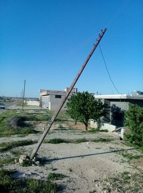 أم جباب الواقعة في ريف حمص الشرقي تعاني من واقع خدمي صعب يؤرق الأهالي سبق وأن ألقينا الضوء عليه , ومجدداً أكثر ما يؤرقهم هو وجود عامود كهرباء مائل في القرية ويسبب خطراً كبيراً عليهم وعلى أطفالهم والمارة ” والصورة توضح ذلك”… فالعامود على وشك السقوط والتسبب بكارثة كبيرة إن لم يتم تجليسه وإعادته إلى وضعه الطبيعي , علماً أن المشكلة ليست جديدة فقد سبق وأن حدثت العام الماضي “2021” وتم تجليسه بشكل إسعافي ووضع بعض الحجارة حوله ما أدى إلى ميلانه من جديد .