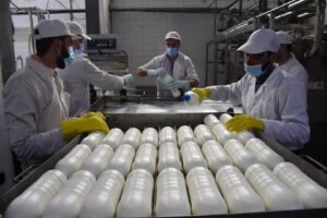 بين مدير شركة ألبان حمص المهندس محمد الحماد أن كمية الحليب الخام المورد للشركة من بداية العام الحالي وحتى نهاية شهر حزيران المنصرم بلغت ٧١٢٣ طنا بنسبة تنفيذ بلغت٩٢ % من الخطة الإنتاجية حيث بلغت قيمة الإنتاج ٣٢.٩٩٢ مليار ليرة بنسبة تنفيذ قدرها ١٤٣ % مشيرا انه تم إنتاج ١١٥٨.٥٠٥ طناً من اللبن المعلب بنسبة تنفيذ بلغت ٥٤% و إنتاج ١٥٨٢.٨٤٤ طناً من اللبنة المعلبة بنسبة تنفيذ ١٢٢ % و ٤٦٧.٧١٢ طناً من الجبن العكاوي بنسبة تنفيذ ١٧١% وبلغت الكمية المنتجة من الجبن المطبوخ ٤٤٤.٣٩٢ طناً بنسبة ١٤٨ % وأشار المهندس حماد أن قيمة المبيعات بلغت ٢٩.٥٤٦ مليار ليرة بنسبة تنفيذ ١٢٨ % من الخطة.