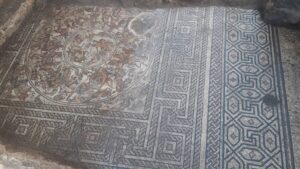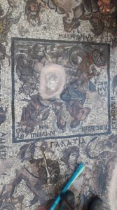 مدير الآثار والمتاحف بحمص المهندس حسام حاميش بين انه في أواخر العام ٢٠١٨ وبالتنسيق مع الجهات المختصة في الرستن أعلمنا عن وجود هذه اللوحة التي كان هناك من يخطط لتهريبها للخارج وقامت المديرية العامة بالكشف عليها وتبين أنها تعود للقرن الرابع الميلادي ووجودها تحت منزل سكني اضطر المديرية لإزالة هذه المنازل بالطرق الفنية وإفساح المجال أمام الفرق الفنية المختصة و في البداية كانت عبارة عن لوحة واحدة ثم تم اكتشاف ثلاث لوحات أخرى وتل الرستن المسجل في عداد المواقع الأثرية في العالم وهو عبارة عن ارض لمملكة ارتوزا