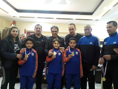 كما كرمت اللجنة التنفيذية وعضو إدارة نادي الكرامة غسان عبد العظيم فريق النخبة بتقديم مبلغ مالي رمزي للاعبين والكوادر