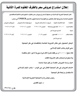 إعلان استدراج عروض سعر بالظرف المختوم للمرة الثانية إعلانات آخر تحديث 26 تشرين أول , 2022 شارك FacebookWhatsAppFacebook MessengerTelegramTwitter