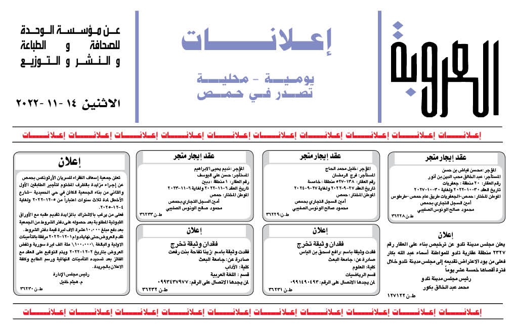 اعلانات العروبة إعلانات في 14 تشرين ثاني , 2022 شارك FacebookWhatsAppFacebook MessengerTelegramTwitter