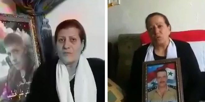 فيما عبرت والدة الشهيدين علي ومصطفى خلوف عن فخرها بولديها اللذين ارتقيا إلى أسمى درجات العطاء فداء للوطن لافتة إلى أن الانتصارات التي يحققها رجال الجيش العربي السوري تخفف من آلام الفراق وقالت: “لن نبخل على الوطن بتقديم فلذات أكبادنا فداء لأرضه.. فأرواحنا رخيصة في سبيل صون كرامته.. ودماء الشهداء ستبقى مشاعل نور وبفضلها تم دحر الإرهاب”.