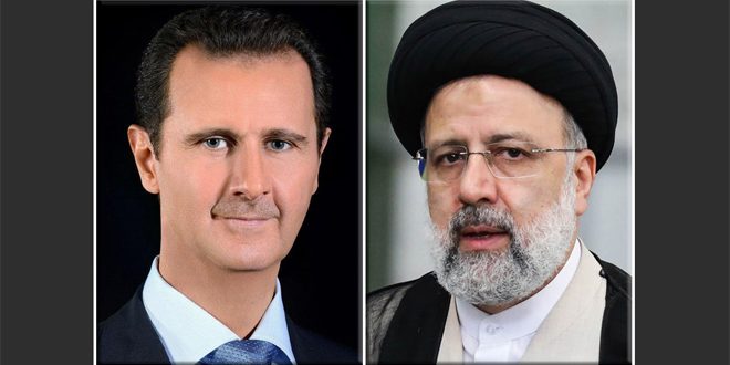 الرئيس الإيراني يؤكد خلال اتصال هاتفي مع الرئيس الأسد وقوف بلاده إلى جانب سورية في المحنة التي تتعرض لها إثر الزلزال المدمر