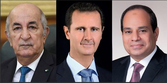 تقدم الرئيس الجزائري عبد المجيد تبّون خلال اتصال هاتفي مع الرئيس بشار الأسد بعد ظهر اليوم بخالص التعازي لسيادته وللشعب السوري بضحايا الزلزال الذي تعرضت له سورية، مؤكداً تضامن الجزائر ووقوفها مع سورية واستعدادها التام للاستمرار في تقديم كل مجهود من شأنه التخفيف من حدة هذه المأساة الأليمة وآثارها.
