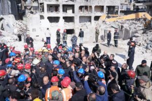 زار السيد الرئيس بشار الأسد اليوم موقعاً تعمل فيه فرق الإنقاذ على رفع الأنقاض والدمار لانتشال المصابين وضحايا الزلزال بحي المشارقة بمدينة حلب.