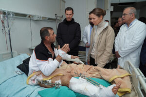 الرئيس بشار الأسد والسيدة أسماء يطمئنان على مصابي الزلزال ويطلعان على عمليات إزالة الأنقاض في اللاذقية