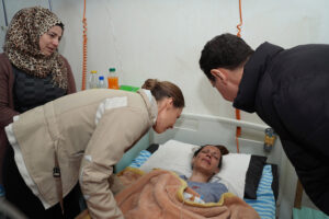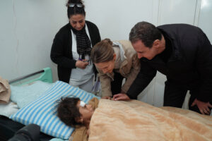 واطمأن الرئيس الأسد والسيدة أسماء على أوضاع المصابين بسبب الزلزال في مشفى تشرين الجامعي، وعلى صحة المصابين ضحى نور الله وابنها إبراهيم زكريا اللذين تم انتشالهما مساء أمس بعد خمسة أيام قضياها تحت الأنقاض في مدينة جبلة.