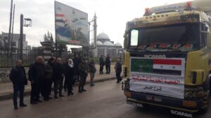 مديرة الشؤون الاجتماعية والعمل في حمص سمر المصطفى قالت : تم التنسيق مع محافظة حمص والجمعيات الخيرية في المحافظة لجمع التبرعات لمساعدة أهلنا المتضررين من الزلزال في محافظات حلب واللاذقية وحماة واليوم انطلقت قافلة جديدة مشددة على أن الفعالية مستمرة وسيتم إطلاق قوافل مساعدات جديدة قريبا.