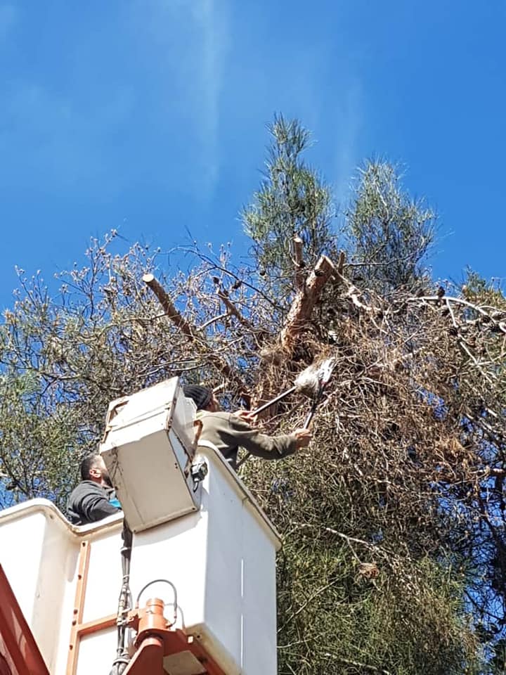 حيث بلغ عدد الأعشاش التي تم قصها وحرقها ٢٥٠٠ عش وتم استخدام الروافع والأدوات الخاصة بالمكافحة.
