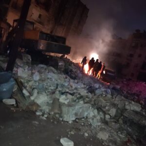 الجدير ذكره أننا كنا أول حملة مؤازرة وصلت إلى حلب وهناك بقيت الكوادر الطبية في المشفى للمساعدة في العمليات الجراحية … والعيادتان المتنقلتان توجهتا إلى عدة أماكن بشكل متتالٍ لتقديم الدعم الطبي الأولي خارج المشفى مع الدعم النفسي للمصابين غير الحرجين وللسكان المتضررين .