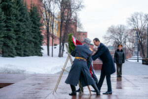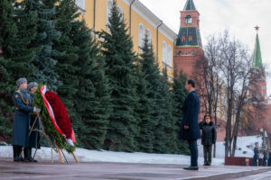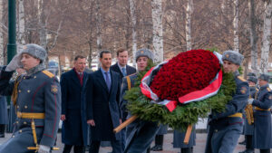 في أولى محطات زيارته الرسمية إلى روسيا الاتحادية، زار السيد الرئيس بشار الأسد والوفد المرافق له ضريح الجندي المجهول في موسكو ووضع إكليلاً من الزهور على النصب التذكاري، وكان في استقباله عند الضريح الجنرال إيفغيني سيليزينييف قائد حامية موسكو، ومدير مراسم الخارجية الروسية وجرت لسيادته مراسم استقبال تضمنت استعراض حرس الشرف، بينما كانت الأوركسترا الرسمية تعزف لحن الجندي المجهول والنشيد الوطني للجمهورية العربية السورية.
