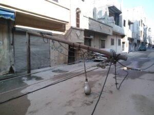 ذكر مدير شركة كهرباء حمص المهندس محمود حديد أن العاصفة الهوائية التي ضربت البلاد يوم الأربعاء الماضي 29 آذار أدت إلى أضرار في الشبكة وسقوط وانهيار بعض الأبراج والأعمدة ..فالأضرار التي وقعت على الخط المزدوج مخارج 20 كيلو فوط “التوتر المتوسط” هي سقوط خمس أبراج و عامود واحد وتوزعت في مناطق عدة فهناك بُرجان في تفريعة عرجون, وبرج على خط مهين وبرج على خط القبو والبرج الخامس على خط بلقسة …في حين أن العمود الذي سقط كان في قرية نوى ..