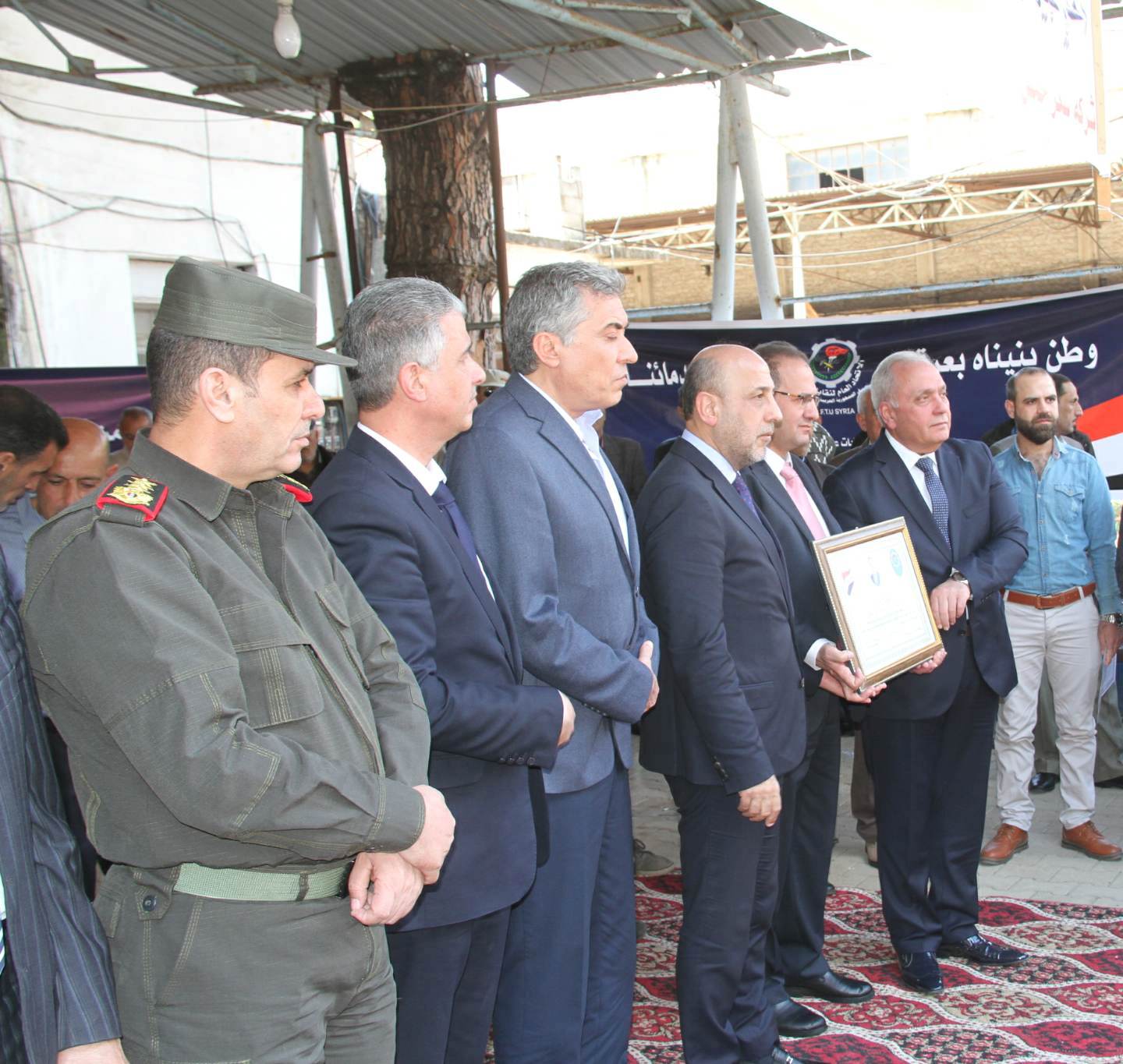 بمناسبة عيد العمال وتقديرا لجهودهم التي بذلوها في ميادين العمل وصمودهم خلف آلاتهم في أحلك الظروف ليبقى الوطن عزيزا شامخا ولتبقى عجلة الإنتاج مستمرة في الدوران مما يعزز صمود الوطن ، كرم اتحاد عمال محافظة حمص اليوم٥٠٠ عامل وعاملة من مختلف القطاعات الإنتاجية والخدمية و ذلك في شركة السكر .