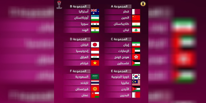 أوقعت قرعة النسخة الثامنة عشرة من بطولة كأس آسيا لكرة القدم والتي سحبت في العاصمة القطرية الدوحة منتخب سورية في المجموعة الثانية إلى جانب منتخبات أوزبكستان واستراليا والهند.