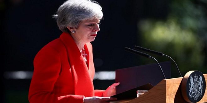 أعلنت رئيسة وزراء بريطانيا تيريزا ماي استقالتها من منصبها وسط الأزمة السياسية الحادة التي تعصف بالبلاد على خلفية فشل خطتها بالخروج من الاتحاد الأوروبي “بريكست”.