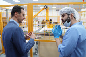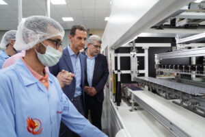 كما زار الرئيس الأسد أيضاً الشركة السورية لإنتاج اللواقط الكهروضوئية التي أنشئت حديثاً في اللاذقية بخطوط إنتاج متطورة لتصنيع اللواقط اللازمة لإنشاء منظومات الطاقة الشمسية.