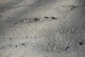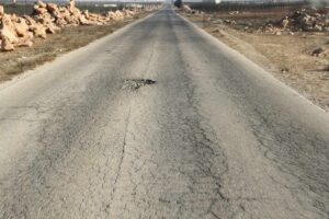 وكما توضح الصور فإن هذا الطريق الحيوي والهام مليء بالحفر وسيء نتيجة مرور الشاحنات المحملة بحمولات زائدة عن الحد مما يتسبب بحوادث سير متكررة و تعيق حركة السيارات التي تعبر الطريق المذكور وتصبح هذه الحفر مصيدة للسيارات ,وبعض الحفر يصل عمقها أكثر من ثلاثين سم ويطالب الأهالي ترميم وإعادة تأهيل الطريق حفاظا على السلامة العامة.