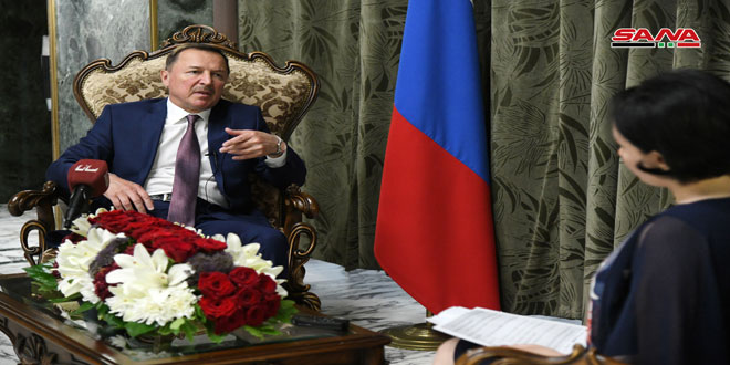 وفي مقابلة خاصة مع سانا بمناسبة الذكرى الـ29 للعيد الوطني لبلاده وصف السفير الروسي العلاقات مع سورية بأنها “علاقات صداقة استراتيجية” برهنت خلال السنوات الماضية عن “ثباتها وقوتها في وجه التحديات الإقليمية والعالمية” حيث وقفت روسيا إلى جانب سورية وشعبها في وجه التهديد الإرهابي المدعوم خارجيا وتكللت تلك الجهود باستعادة سلطة الدولة السورية على معظم الأراضي وعودة الأمان تدريجيا إلى تلك المناطق.