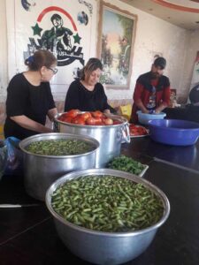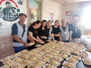 وبينت المشرفة على فريق الأمهات العاملات في المطبخ الميداني بالجمعية إبتسام مصلا، أن فريق الأمهات يعمل كخلية نحل على تحضير وجبات الطعام اللازمة للجرحى ومرافقيهم بالمشافي، ويساهم بالتبرع بالدم ويقدم تبرعات مالية وأدوية وألبسة للمصابين وفاء لوطننا ولشهدائه وأبطاله.