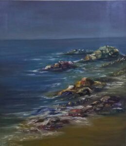 الفنانة التشكيلية سلام الأحمد تناولت في لوحاتها الخمس التي شاركت فيها مواضيع متنوعة رسم زيتي على القماش مشيرة أن الموضوع الأساسي لأعمالها” الإنسان ” كيف يتفاعل مع الأحداث المحيطة به من حزن وفرح وأمل وأضافت : حاولت أن أصور بعض اللحظات التي يعيشها الإنسان بشكله وحركته وعواطفه بأسلوبي الخاص وبالأدوات التي تخدم المشهد البصري الذي عملت على تأليفه من خطوط ومساحات وألوان وكتله وفراغ.