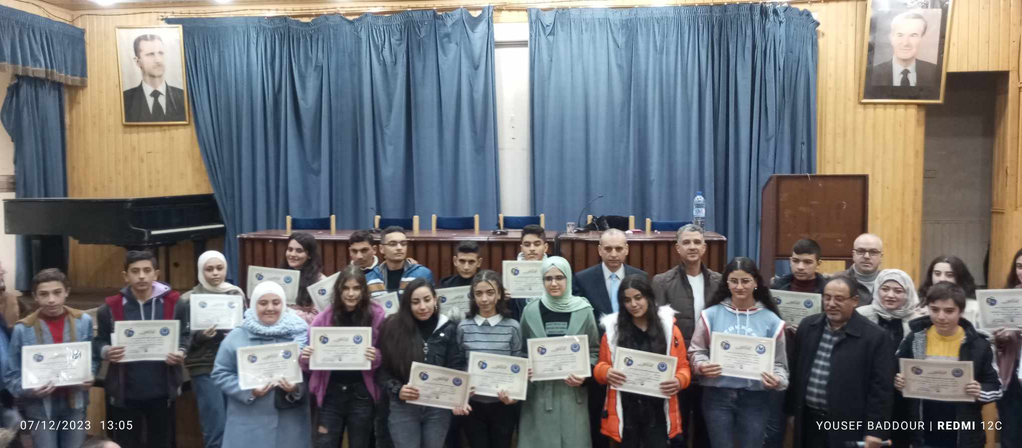 تقديرا لمثابرتهم وتفوقهم كرم اتحاد عمال حمص بالتعاون مع مكتب نقابة عمال الطباعة والثقافة والإعلام صباح اليوم في قاعة سامي الدروبي بالمركز الثقافي ٢٨ طالبة وطالب من المتفوقين في الشهادتين الإعدادية والثانوية من أبناء العاملين .