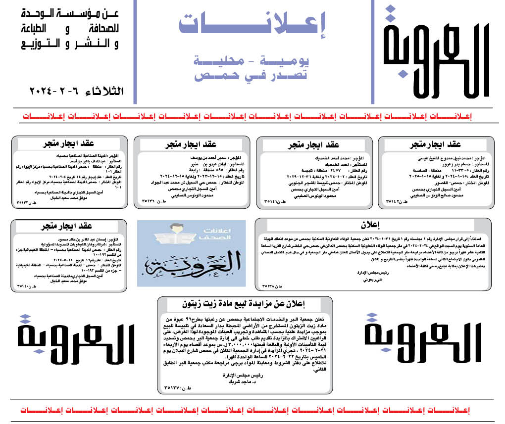 اعلانات العروبة إعلانات آخر تحديث 6 شباط , 2024 شارك FacebookWhatsAppFacebook MessengerTelegramTwitter