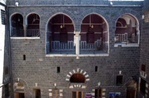 وقد بلّطت أرضية الدار بالحجر البازلتي الأسود، وهو نوع الحجر ذاته المستخدم في بناء جدران الدار.