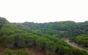 و يبعد عن حمص 60 كم إلى الجهة الغربية الشمالية عنها على طريق عام “حمص- شين- مشتى الحلو”و تبلغ مساحته حوالي 1500 هكتار وارتفاعه عن سطح البحر 900-1050م وفيه أنواع نباتية متعددة منها كستناء 35% بمساحة 525 هكتار,صنوبر ثمري 25% بمساحة400 هكتار,صنوبر بروتي 15% بمساحة225 هكتار,سرو 15%بمساحة200هكتار,أرز 8 %بمساحة150هكتار,شوح وأكاسيا 2%,وينمو تحت الأشجار غطاء نباتي “سراخس وزعتر بري شوك وتوت العليق وزوبع”