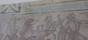 لوحة فسيفسائية أثرية نادرة في غاية الدقة والجمال مازالت معروضة على أحد جدران الرواق الغربي الجنوبي ضمن متحف تدمر الوطني رغم محاولة اليد الٱثمة لداعش تشويهها إلى جانب بعض القطع الأثرية الأخرى المتبقية وخلال إعادة تأهيل صالات وغرف وأروقة المتحف من قبل أحد المتعهدين تسببت ورشة طلاء الجدران والأسقف بمخلفات الدهان على تلك اللوحة الفسيفسائية إلى جانب بعض اللوحات الأثرية الأخرى نتيجة الإهمال بعدم تغطية تلك القطع الأثرية للحفاظ عليها وعدم تأثرها بمخلفات أعمال الترميم الجارية فهل يتم إسعاف اللوحات واللقى الأثرية الأخرى باتخاذ الاحتياطات المطلوبة قبل أن تنتهي أعمال طلاء أروقة المتحف المتبقية ؟