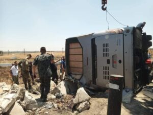 توفي عشرة أشخاص وأصيب 23 بجروح جراء حادث سير وقع اليوم على طريق تحويلة حمص – دمشق.