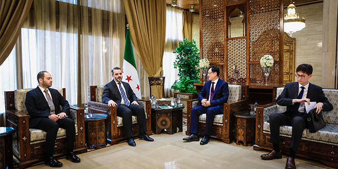 وجرى خلال اللقاء بحث سبل تعزيز التعاون الثنائي بين البلدين في مختلف المجالات بما يخدم المصالح المشتركة للشعبين، وأكد السفير الصيني حرص بلاده على دعم سيادة سوريا ووحدة أراضيها، مجددًا رفض الصين للاعتداءات الإسرائيلية على الأراضي السورية.