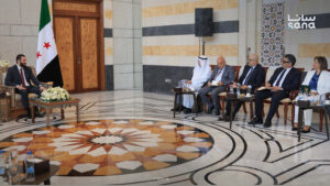 الرئيس الشرع يستقبل وفداً إعلامياً عربياً أحدث الأخبارأخبار العروبةرئيسي في 24 آب , 2025 استقبل السيد الرئيس أحمد الشرع وفداً إعلامياً عربياً، يضم مديري مؤسسات إعلامية ورؤساء تحرير صحف عربية ووزراء إعلام سابقين. شارك FacebookWhatsAppFacebook MessengerTelegramTwitter