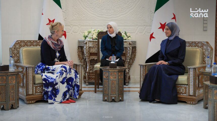 استقبلت عقيلة الرئيس أحمد الشرع السيدة لطيفة الدروبي في قصر الشعب السيدة سوزان كوبر عقيلة قائد القيادة المركزية الأمريكية الأدميرال براد كوبر.