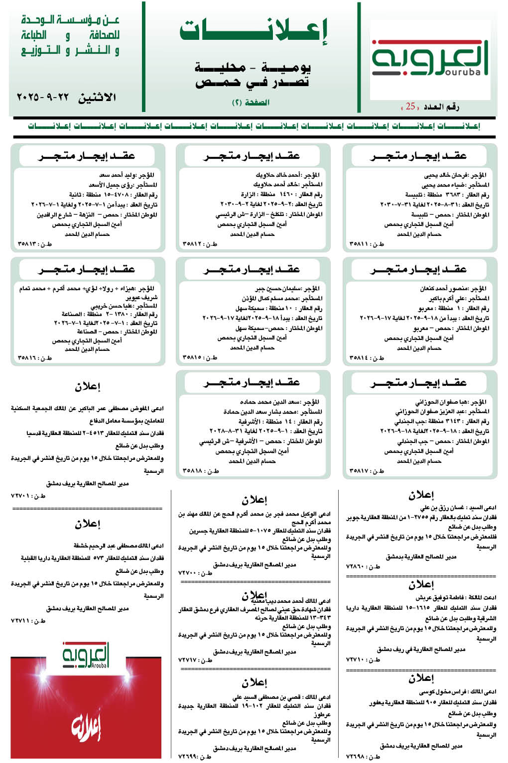 إعلانات العروبة إعلانات آخر تحديث 22 أيلول , 2025 شارك FacebookWhatsAppFacebook MessengerTelegramTwitter