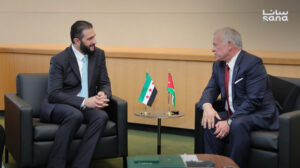 الرئيس الشرع يجتمع مع الملك عبد الله الثاني في نيويورك أحدث الأخبارأخبار العروبةرئيسي في 23 أيلول , 2025 اجتمع رئيس الجمهورية العربية السورية أحمد الشرع، مع الملك عبد الله الثاني ملك المملكة الأردنية الهاشمية، بحضور وزير الخارجية والمغتربين أسعد حسن الشيباني، وذلك على هامش أعمال الدورة الحالية للجمعية العامة للأمم المتحدة في نيويورك. شارك FacebookWhatsAppFacebook MessengerTelegramTwitter