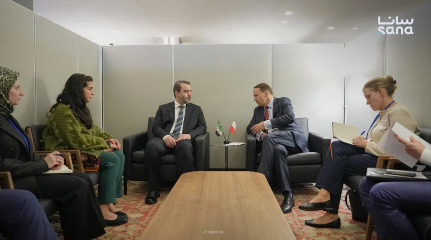 وزير الخارجية يلتقي نظيره البولندي في نيويورك أحدث الأخبارأخبار العروبة في 25 أيلول , 2025 التقى وزير الخارجية والمغتربين أسعد حسن الشيباني نظيره البولندي رادوسلاف سيكورسكي في مقر الأمم المتحدة بنيويورك، وذلك على هامش أعمال الدورة الـ80 للجمعية العامة للأمم المتحدة. شارك FacebookWhatsAppFacebook MessengerTelegramTwitter