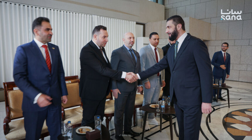 استقبل رئيس الجمهورية العربية السورية أحمد الشرع في قصر الشعب بدمشق، وفداً من رجال الأعمال السوريين المقيمين في جمهورية الصين الشعبية.