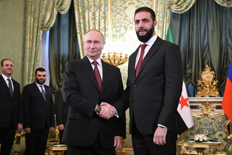 أكد الرئيس أحمد الشرع خلال لقائه الرئيس الروسي فلاديمير بوتين أن سوريا الجديدة تعيد ربط العلاقات مع كل الدول الإقليمية والعالمية، مشيراً إلى أن هناك علاقات ثنائية ومصالح مشتركة تربط سوريا مع روسيا، وتحترم كل الاتفاقيات معها.