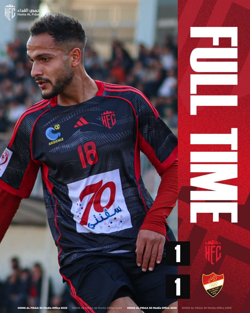 ضمن منافسات الجولة الثالثة من دور المجموعات لبطولة حلب ست الكل الكروية تعادل فرسان حمص الفداء مع أهلي حلب إيجابيا بهدف لكل فريق في المباراة التي جمعتهما على أرض ملعب الحمدانية .