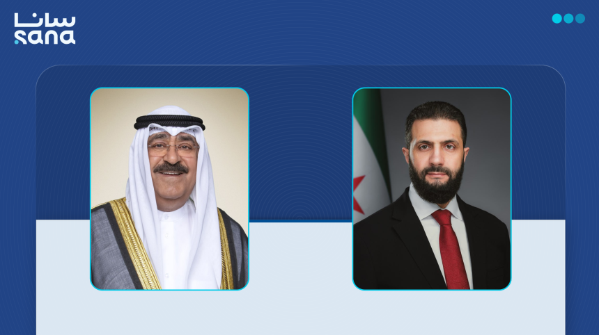 تلقى الرئيس أحمد الشرع برقية تهنئة من أمير الكويت الشيخ مشعل الأحمد الجابر الصباح، بمناسبة عيد التحرير.